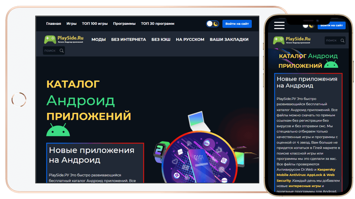 PlaySide - ウェブサイト - コーディングを担当 アプリの評価機能や検索システムを備えたオンラインアプリケーションのカタログサイトです。 アクセスを強化するために、プラットフォーム用の新しいデザインとフレームワークを作成しました。