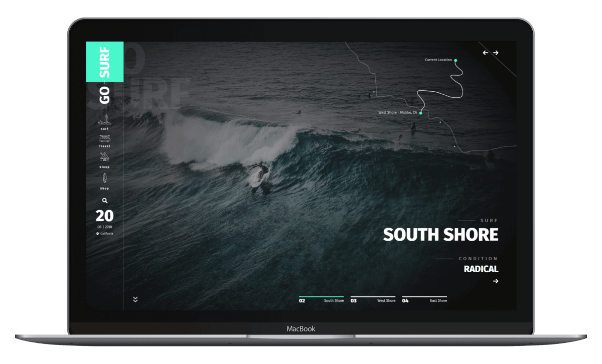 SURF - ウェブサイト - コーディングを担当 CSS アニメーションと外部 JavaScript ライブラリを使用。 上質なサイトになるようアニメーションにこだわりました。
